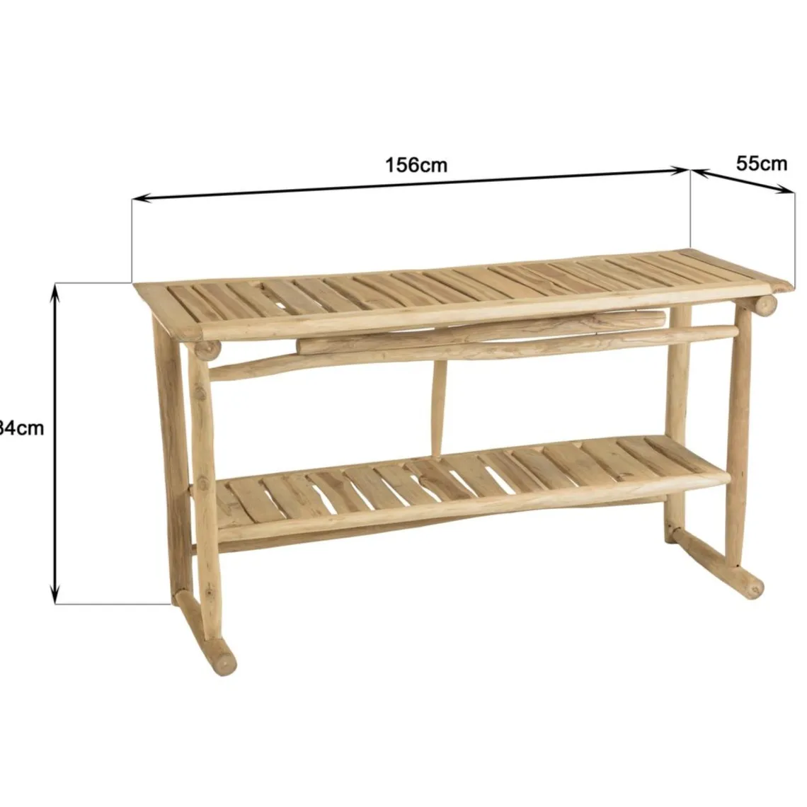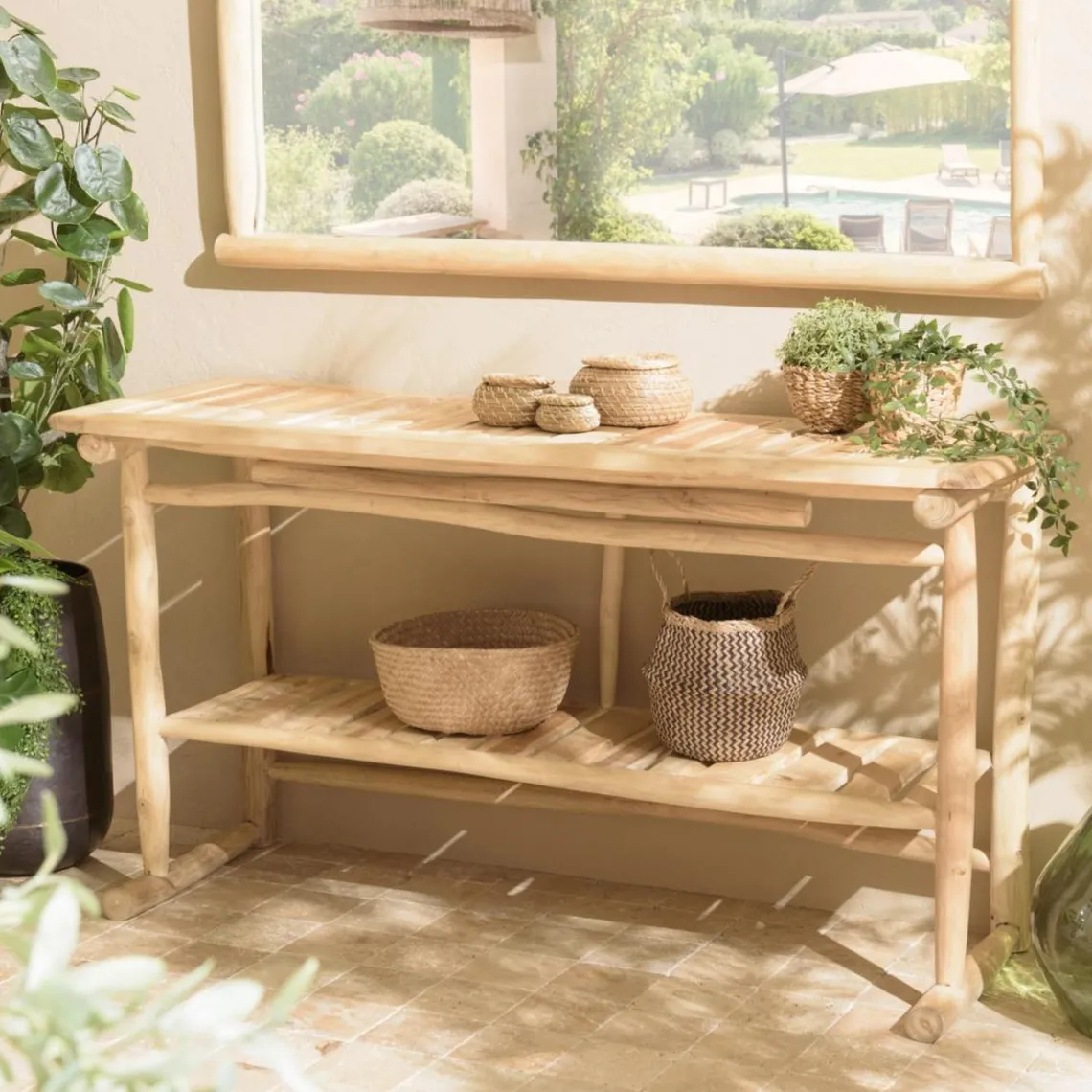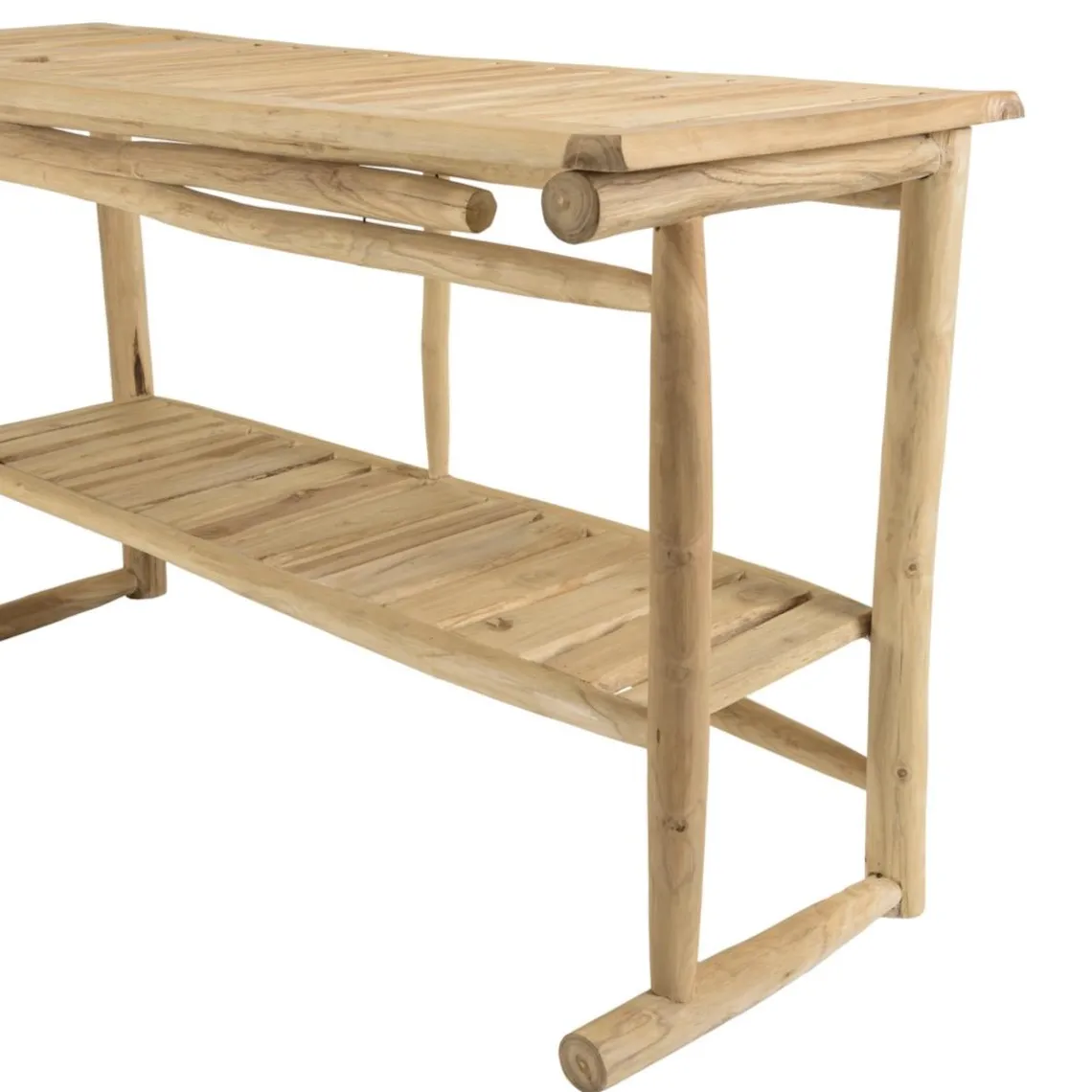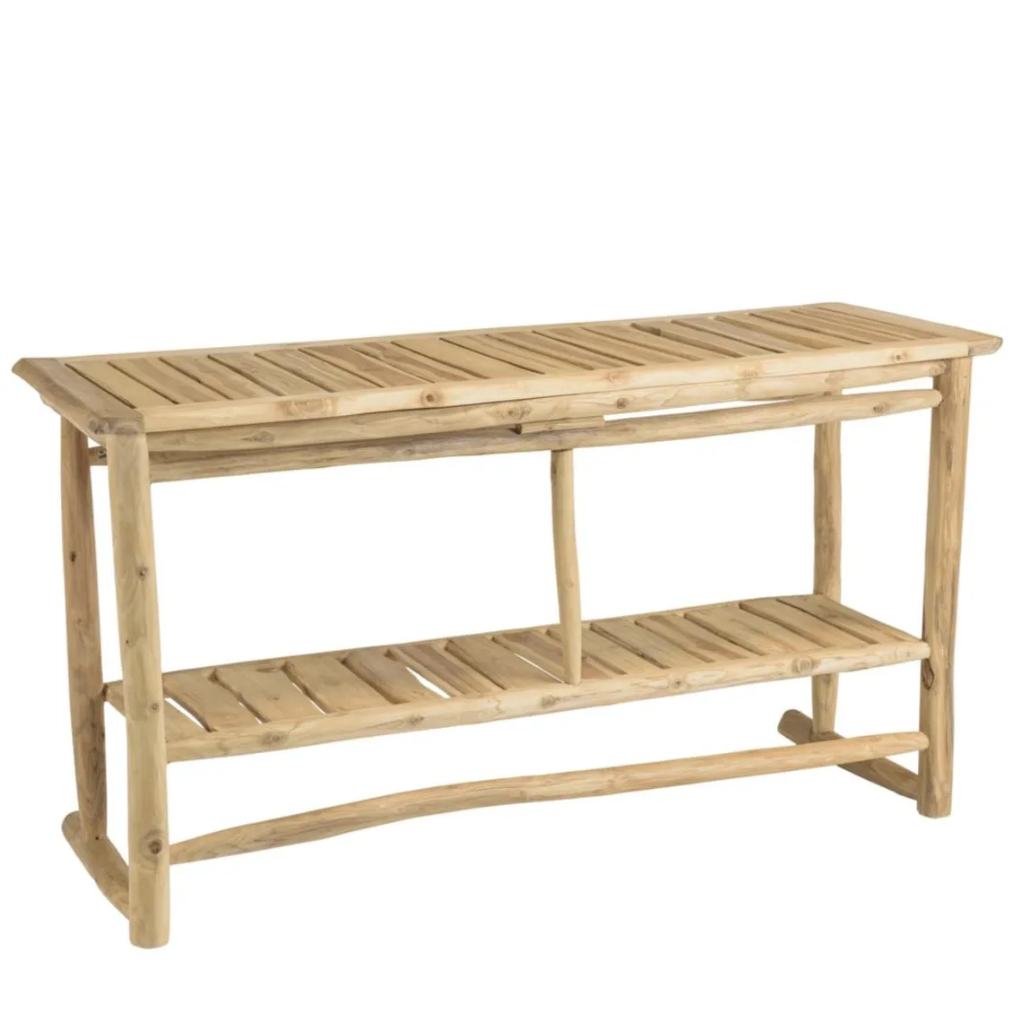La Console WILL de la marque MACABANE est un produit au design unique qui apporte nature et sérénité dans votre intérieur. Sa couleur beige douce et naturelle se marie parfaitement à tout style de décoration. Constituée de deux plateaux robustes en enchevêtrement de branches de Teck naturel, elle offre un espace de rangement pratique et accueillant. Sa matière en Teck, connue pour sa résistance, garantit un produit de qualité durable.