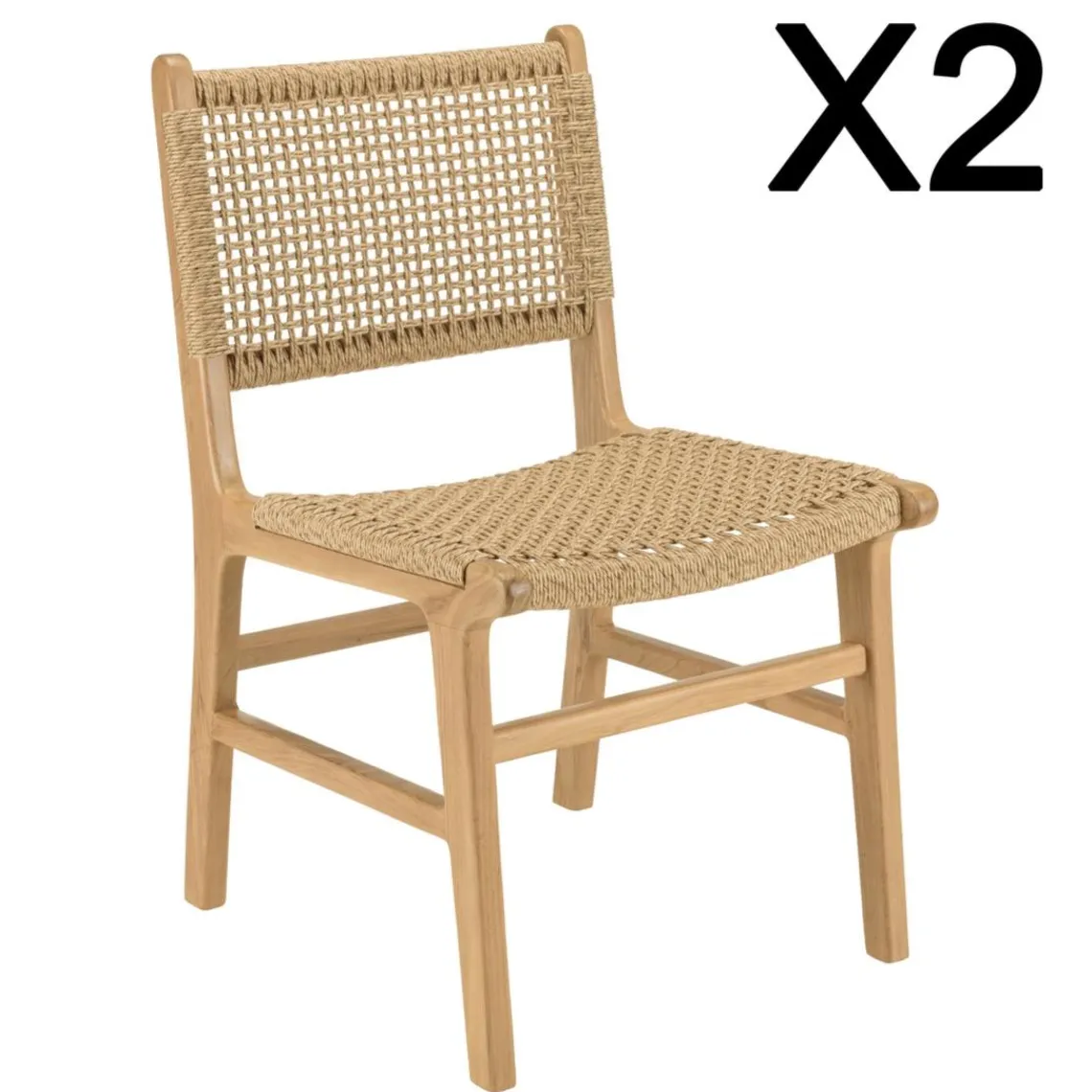 Caractéristiques Lot de 2 chaises jardin teck naturel rotin synthétique beige VALERIA