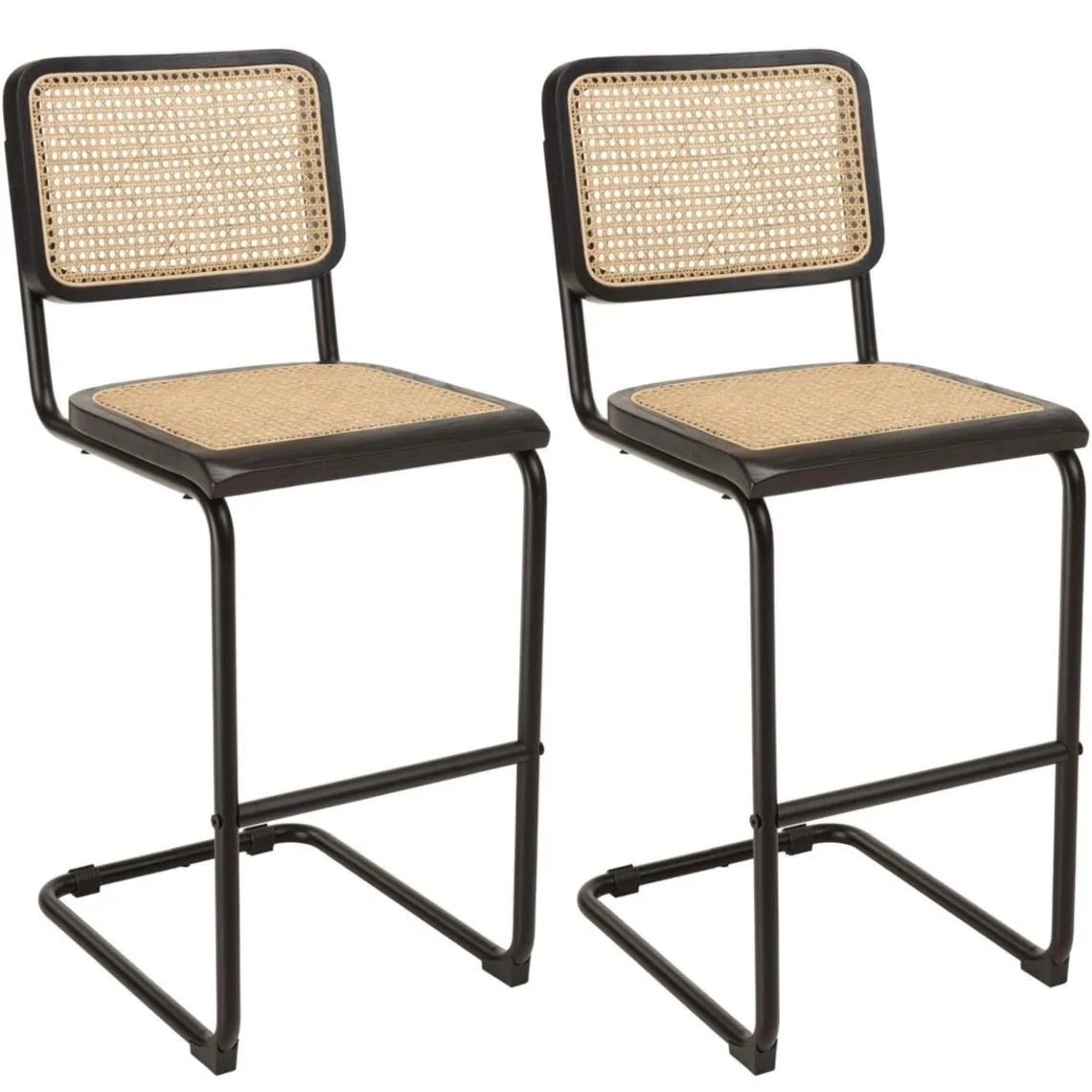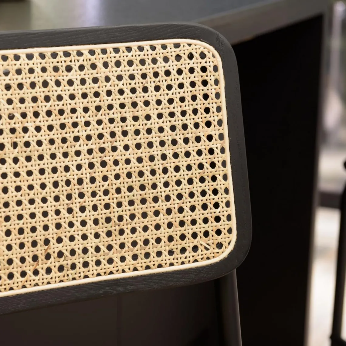 Caractéristiques Lot de 2 tabourets d’ilot bois noir rotin naturel pieds métal PIERRE