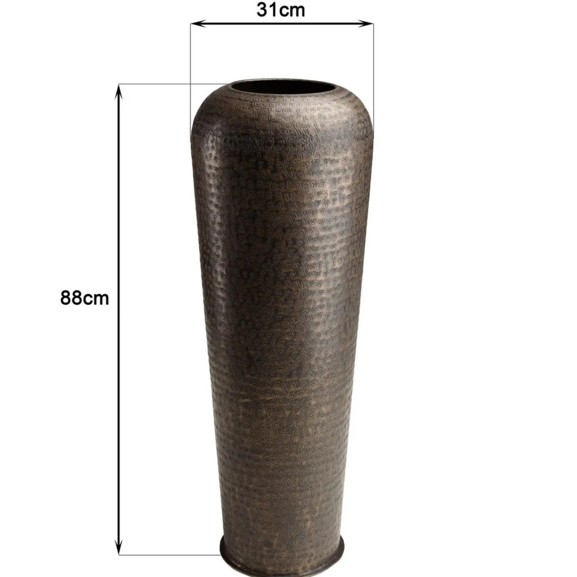 Ce sublime vase MACABANE se distingue par son allure exceptionnelle. D’une hauteur de 88cm, il a une largeur et une profondeur de 31cm offrant une parfaite symétrie. La gravure raffinée sur toute la surface séduit par sa beauté. Sa couleur cuivre noir antique contraste subtilement avec le dessin géométrique gravé en relief. Ce vase couleur cuivre noir sera un ajout remarquable à n’importe quel décor contemporain ou traditionnel.