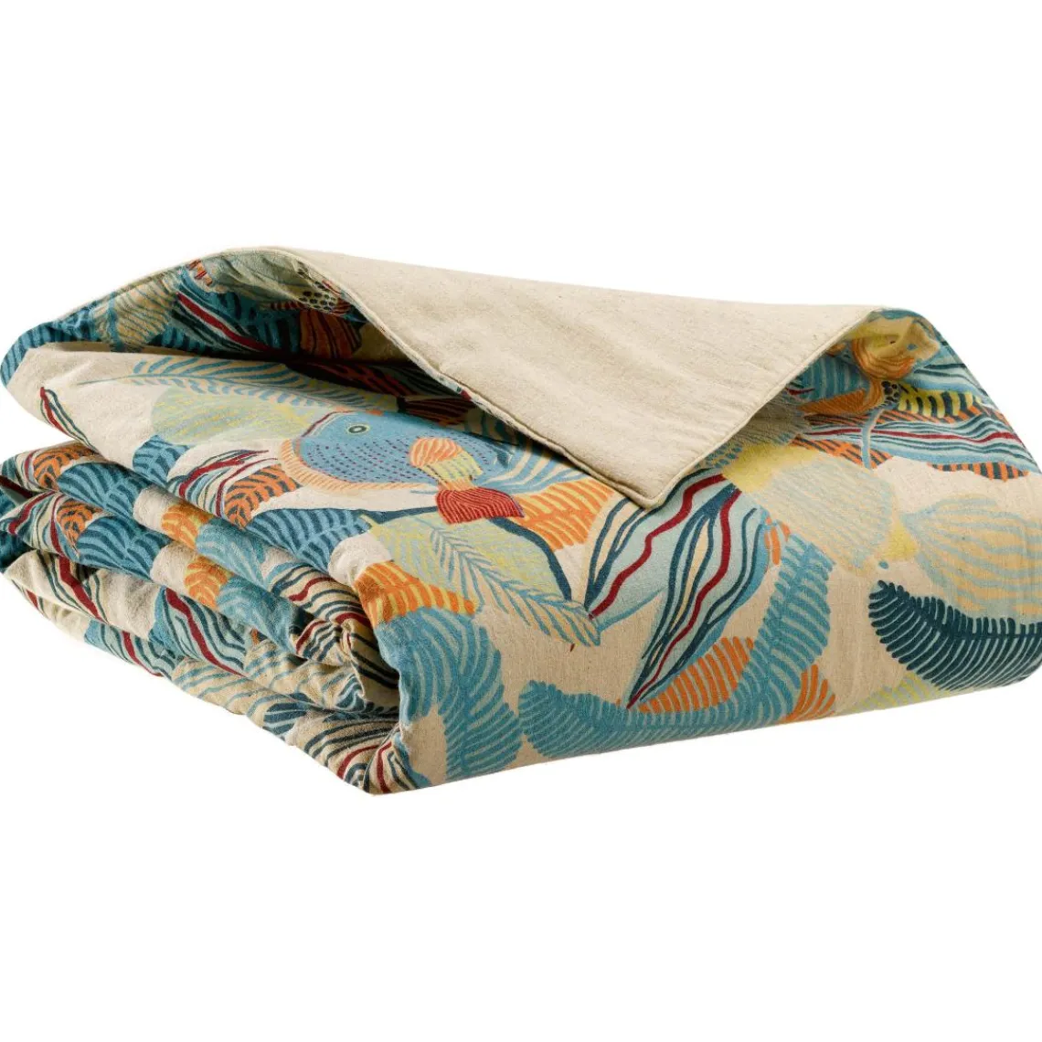Mettez du style et de la convivialité dans votre chambre avec l’édredon imprimé Dori Lagon. Comme une invitation au voyage, ce superbe édredon de la marque Vivaraise exhale un subtil parfum de mystique et d’exotisme. Fabriqué en coton et en lin, il allie douceur et solidité, pour une durabilité optimale. Ses couleurs évoquent le lagon, mélange alliant le bleu du ciel et de la mer avec une touche de vert. Son style authentique donne à votre intérieur une note chaleureuse et romantique. L’édredon Dori Lagon est de haute qualité et saura s’adapter à tous les types de décoration, du plus classique au plus moderne.