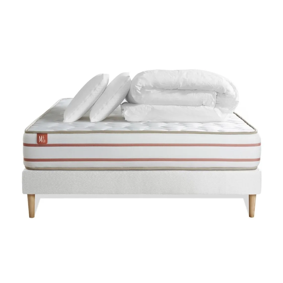 Caractéristiques Pack prêt a dormir matelas LE DOUX Memoire de forme sommier kit Blanc 2 oreillers couette