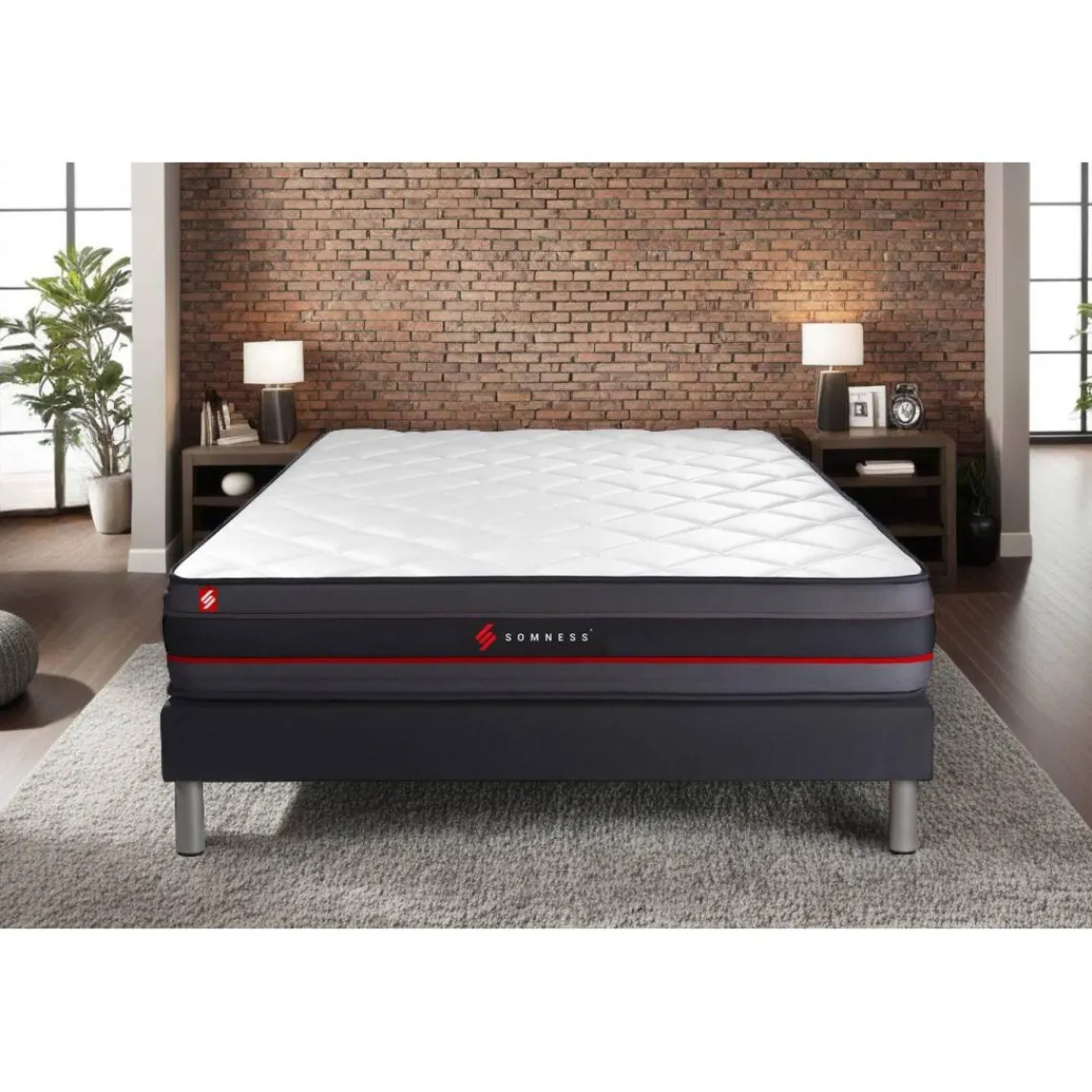 L’Ensemble matelas REGEN à mémoire de forme sommier kit noir de la marque Somness se distingue par son élégance authentique. La couleur Noir dominante confère à ce produit une authentique sobriété. Conçu en tissu, le matelas offre une fermeté bien équilibrée pour un confort optimal, grâce à sa technologie mémoire de forme. Le sommier, aligné sur son kit noir, renforce la robustesse de l’ensemble. Sa finition soignée se distingue par des détails subtils que l’on peut observer sur l’image fournie. Les sommiers à ressorts assurent une plus grande durabilité et un soutien précis pour chaque partie du corps. Le produit combine parfaitement esthétisme, confort et qualité.